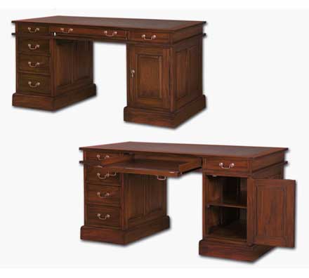 Стол письменный из массива для Вашего кабинета станет не только украшением, которому позавидуют все гости, но и статусной вещью, символом достатка и престижа. Стоит ли говорить о функциональности данного предмета интерьера - без него не обойдется ни один кабинет. Фабрика «Satin Furniture» представляет мебель для жилых помещений выполненную в классическом стиле. Ассортимент включает в себя мебель для сидения, столовых и гостиных, кабинеты и множество аксессуаров. Данная продукция полностью выполнена из массива гивеи-махагонь (красного дерева ). Все элементы мебели обрабатываются вручную. Удачно подобран цвет лакокрасочного покрытия орех («New Antique»). Покрасочные материалы были разработаны бельгийскими  специалистами и поставляются непосредственно из Европы. Мебель поставляется из Индонезии в собранном виде. Для соединения деталей в производстве используются винтовые и шкантовые (шкант-чепики) соединения, также при сборки мелких частей – клеевые соединения.